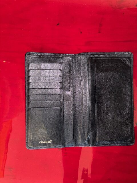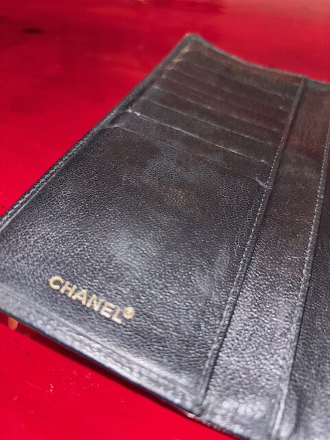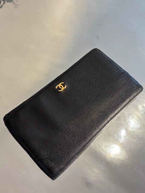 Chanel Vintage Long Wallet aus schwarzem Kalbsleder mit neu vergoldetem CC-Logo.