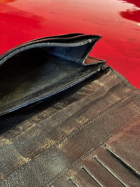 Die Börse wurde in Wien professionell aufbereitet: Das CC-Logo neu vergoldet, ein kleiner Riss fachgerecht repariert und das Innenfutter des Münzfachs entfernt, um die Funktionalität und Haptik zu verbessern. Das Ergebnis ist ein gepflegtes, charmantes Vintage-Stück mit Charakter und Geschichte.