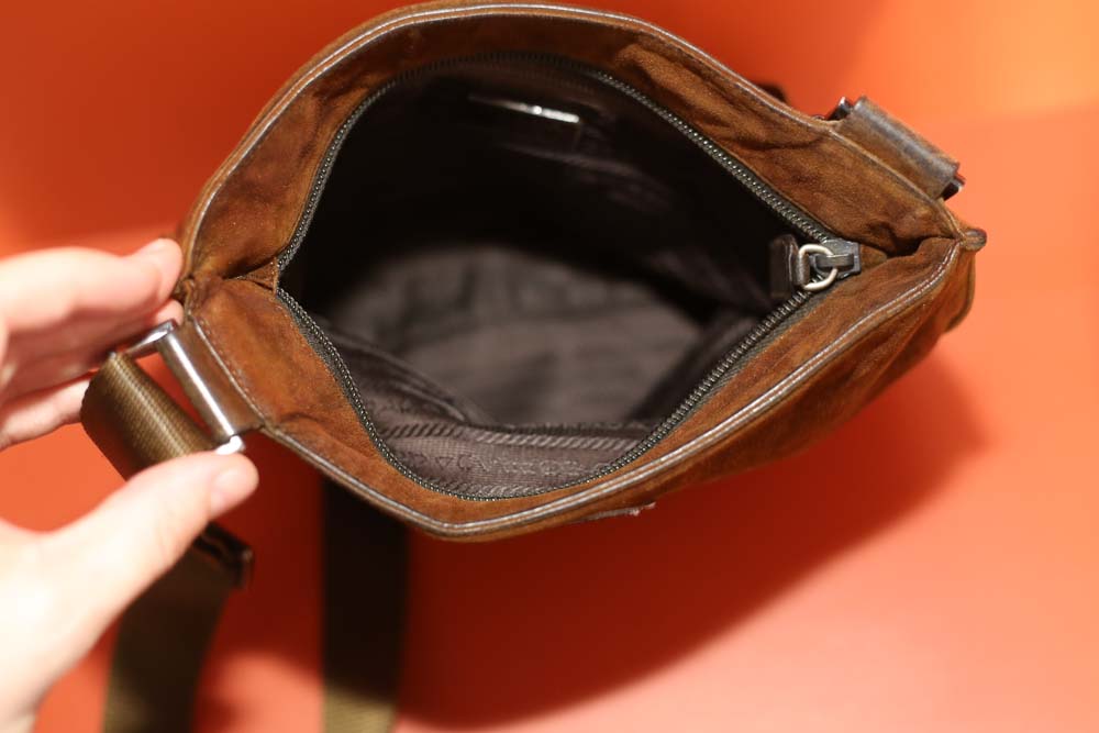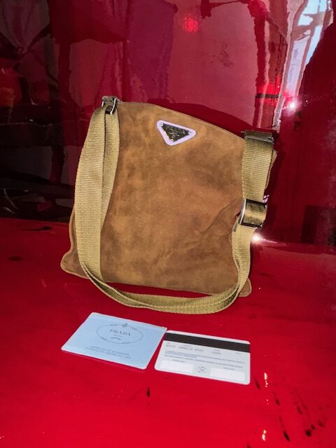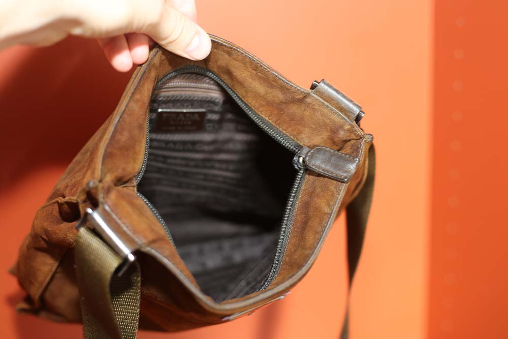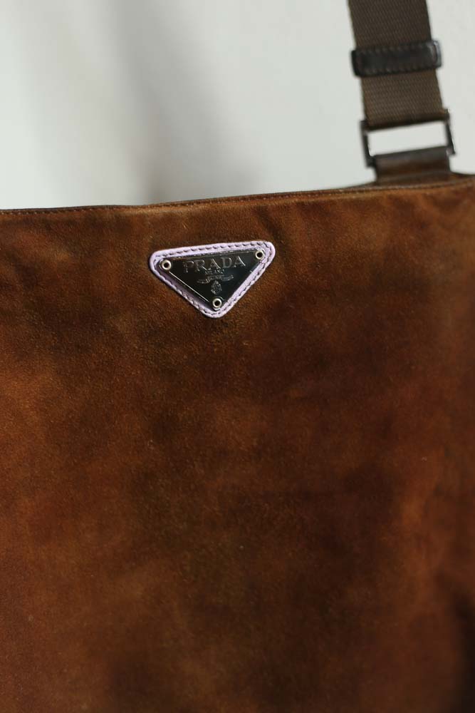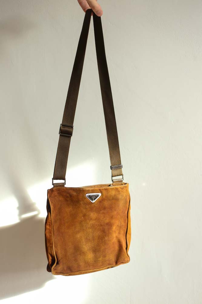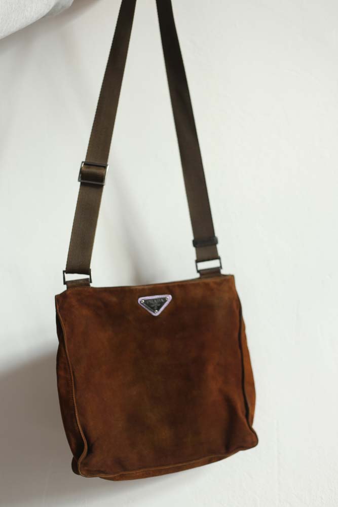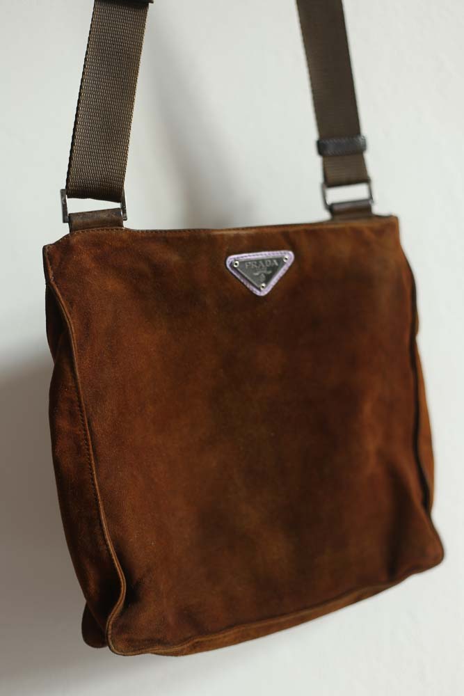 Die Tasche befindet sich in einem guten Vintage-Zustand mit leichten Gebrauchsspuren am Wildleder, die ihren authentischen Charakter unterstreichen.Innen sauber, vollständig funktionsfähig. Inklusive Original Authentizitätskarte und hellblauem Prada-Umschlag.