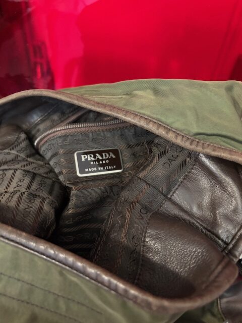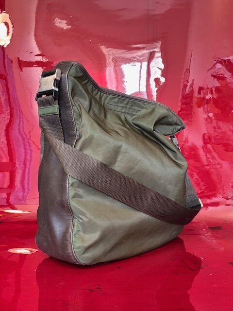 Prada Shoulder Bag aus robustem Nylon in Olivgrün mit weichen Lederdetails in Dunkelbraun. Ein sportlich-elegantes Vintage-Modell aus der ikonischen Tessuto Kollektion. In sehr gutem Zustand mit leichten Gebrauchsspuren – authentisch, funktional und zeitlos. Ein klassisches preloved Prada Original aus Italien. Neupreis 750 €.