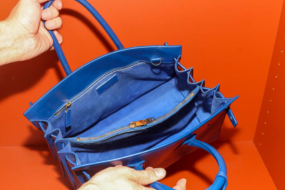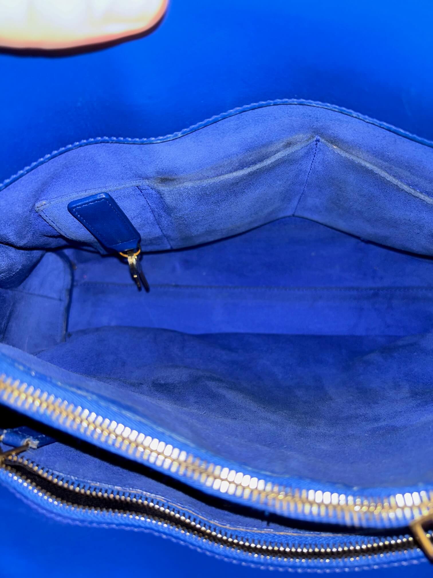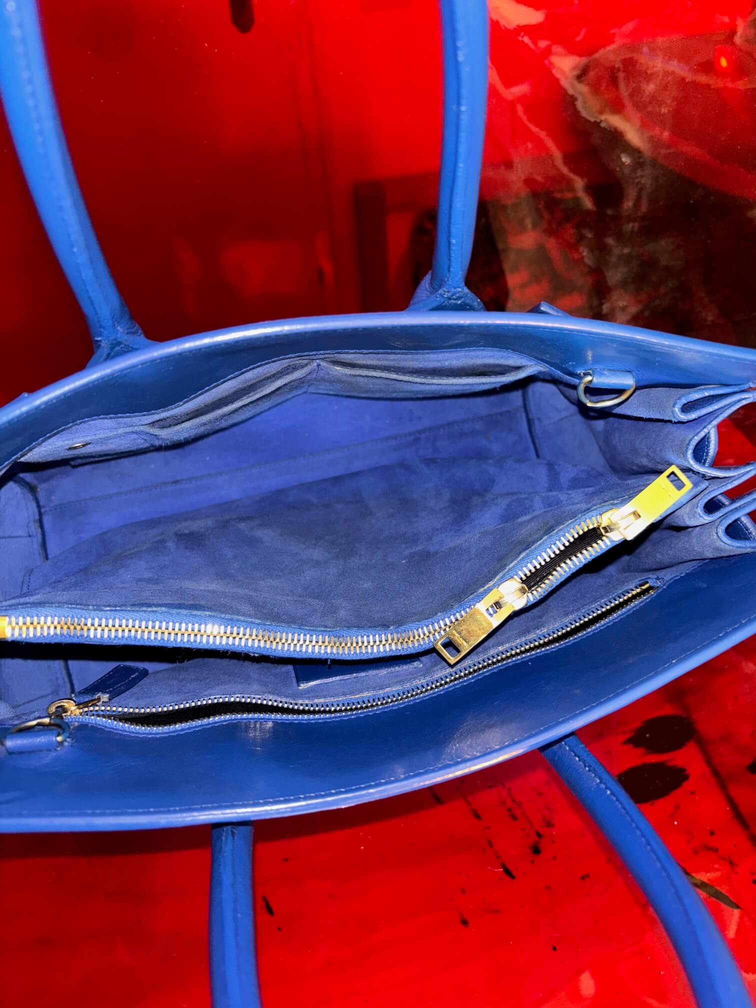 Diese Saint Laurent Sac de Jour stammt aus dem Jahr 2014 und gehört zu den frühen, besonders hochwertig gefertigten Versionen der ikonischen Serie. Gefertigt aus glattem, luxuriösem Kalbsleder in intensivem Royalblau, verbindet sie klassische Pariser Eleganz mit moderner Raffinesse. Die goldfarbene Hardware und das klare, architektonische Design verleihen der Tasche eine edle, zeitlose Ausstrahlung. Das kompakte Format bietet Platz für Essentials – ideal für Alltag, Dinner oder City-Looks. Damals lag der Neupreis bei dieser Tasche zwischen 2.400 – 2.600 €.